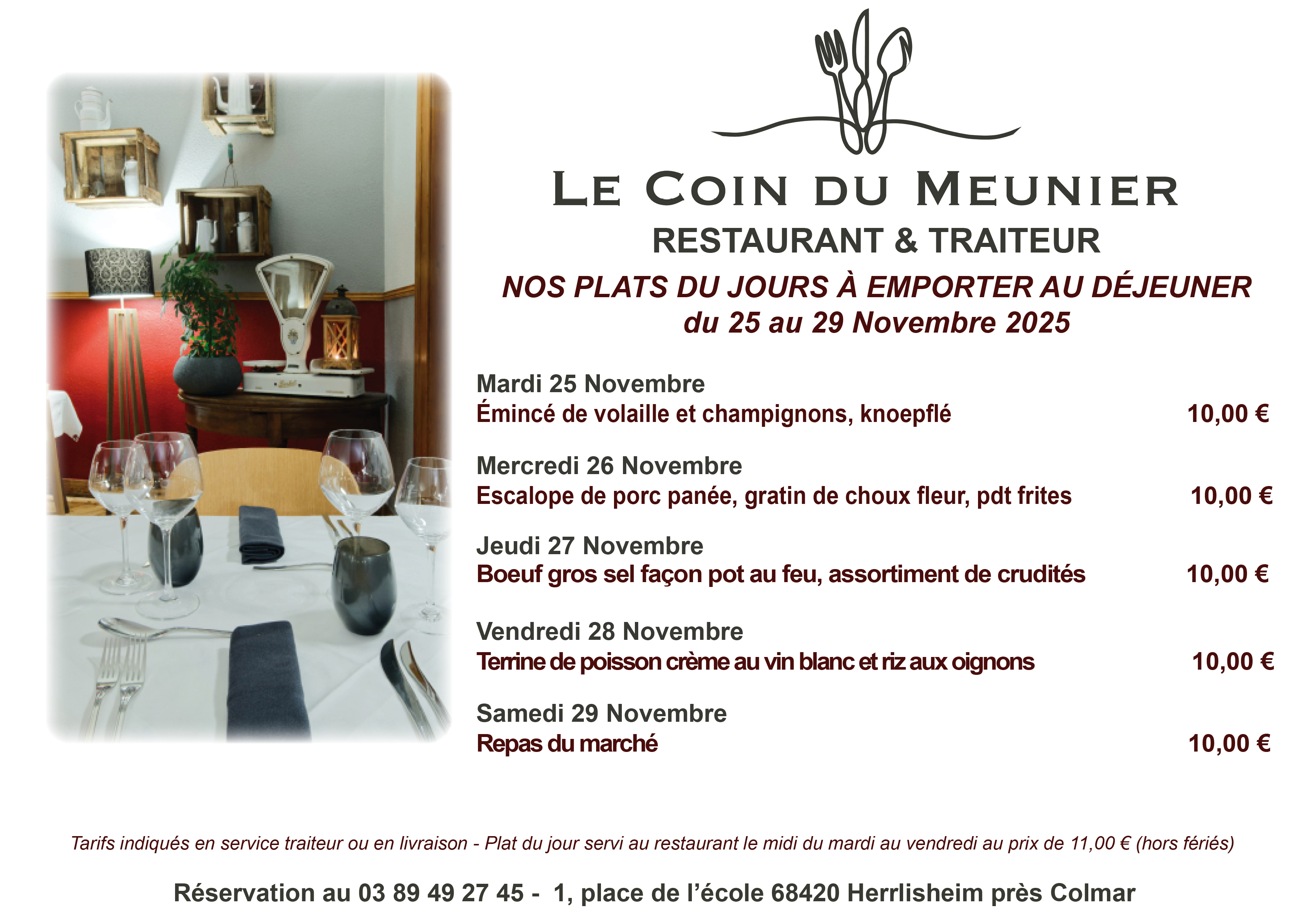 C’est en 2003 que les frères Thierry et Laurent Winkelmuller ont décidé de reprendre l’ancien restaurant du village pour en faire le Restaurant-Traiteur Le Coin du Meunier.